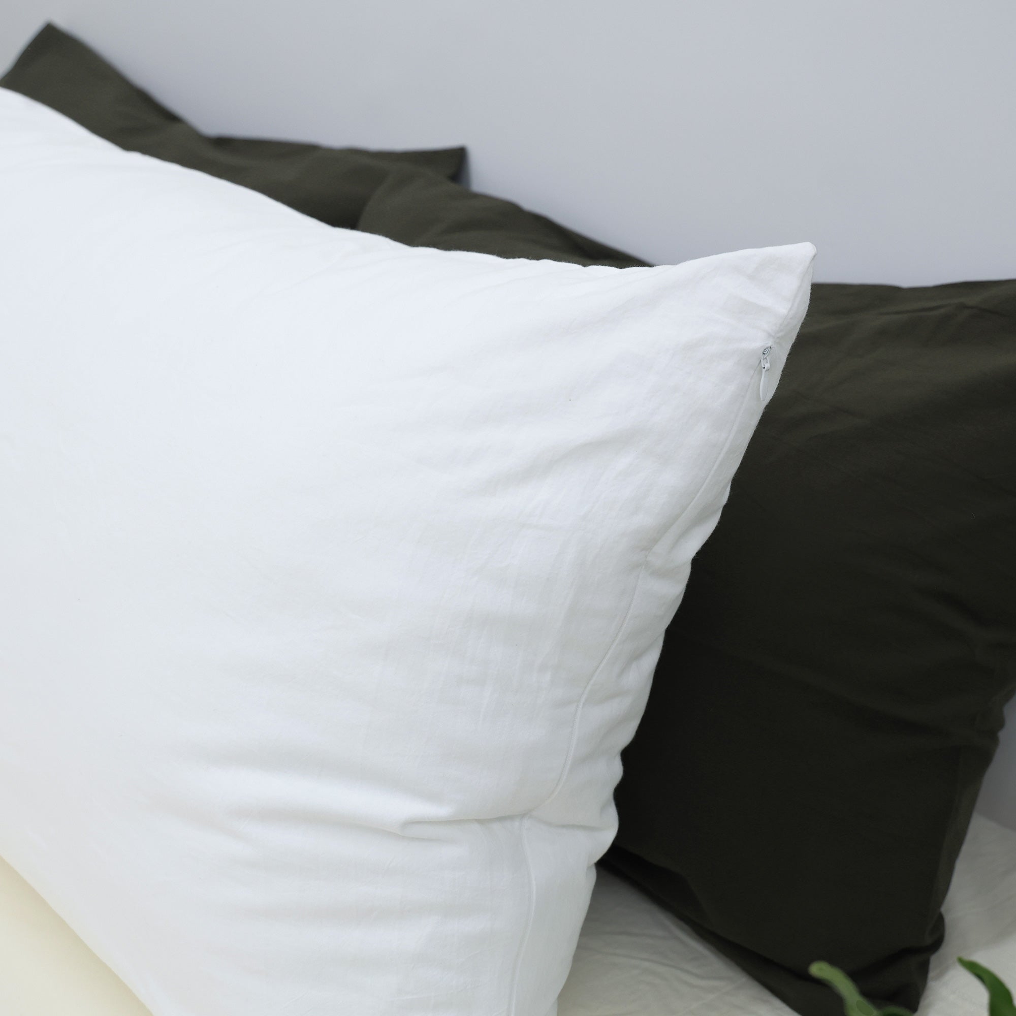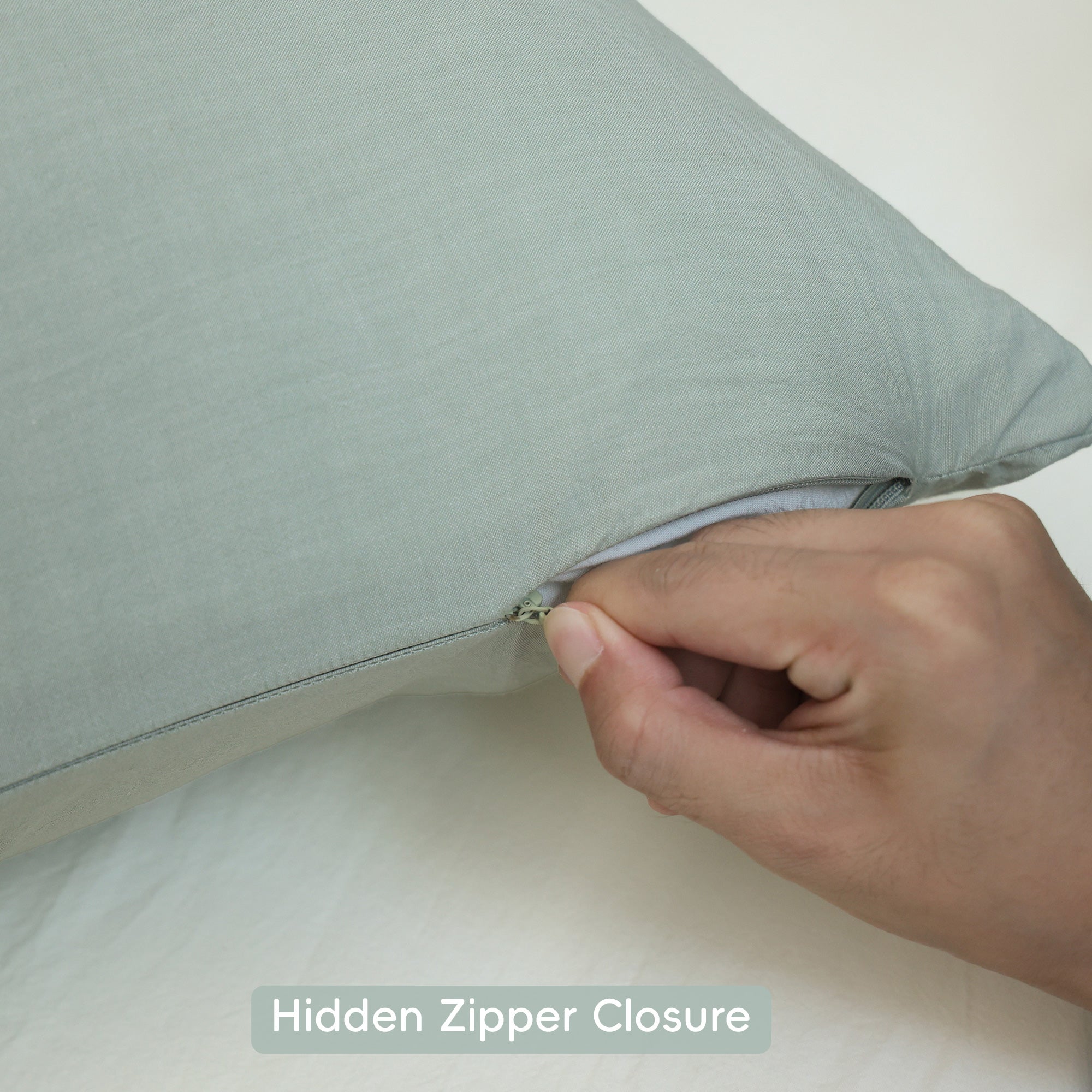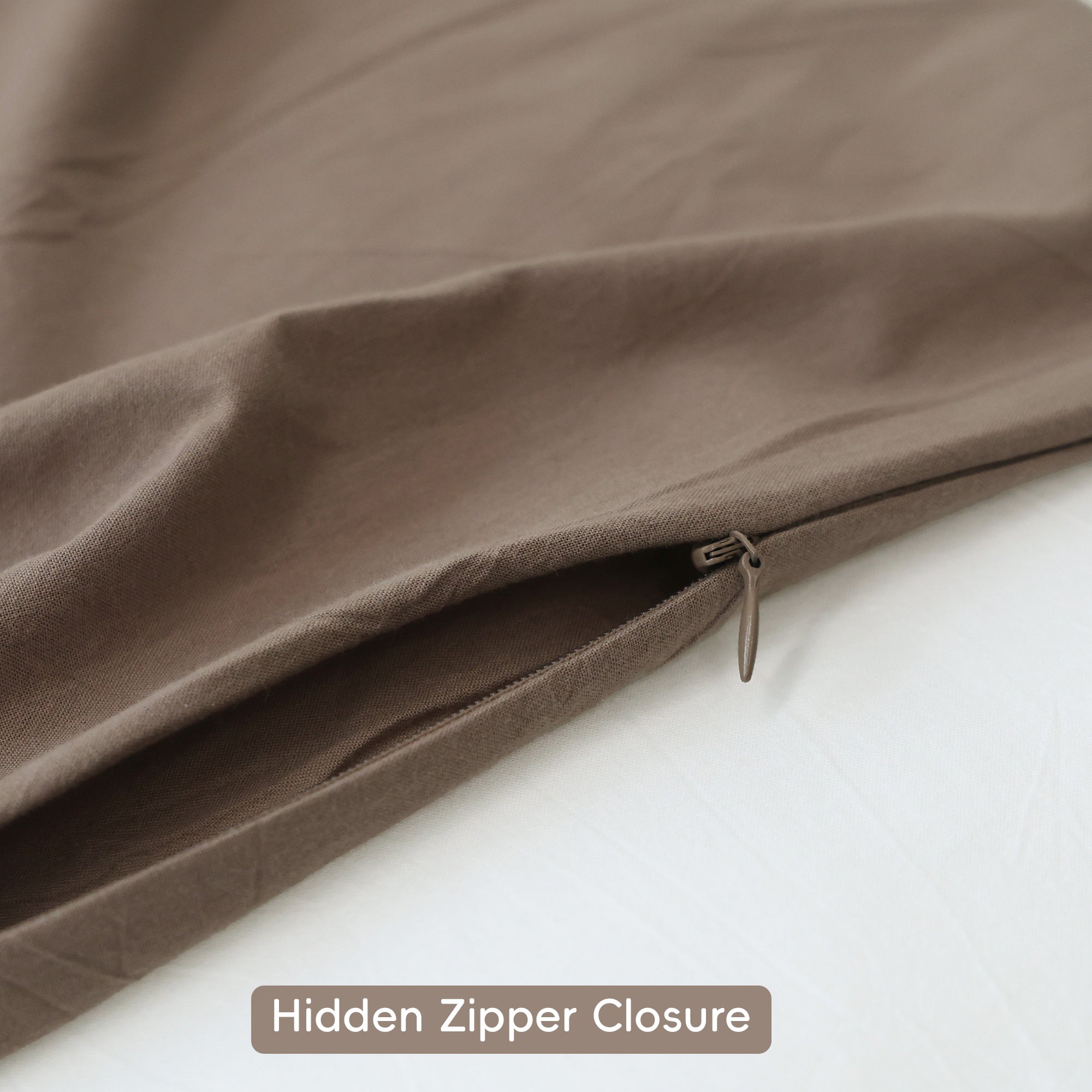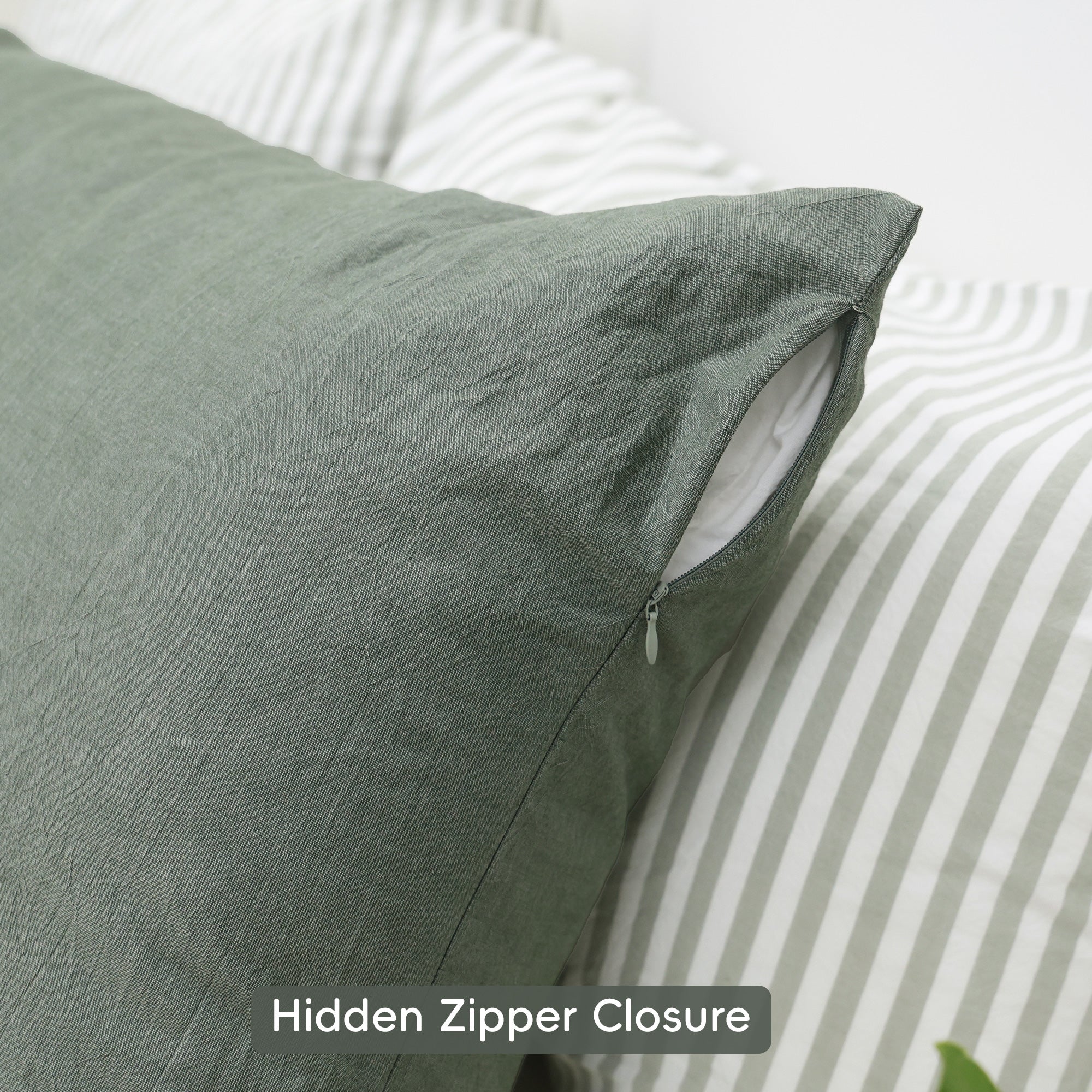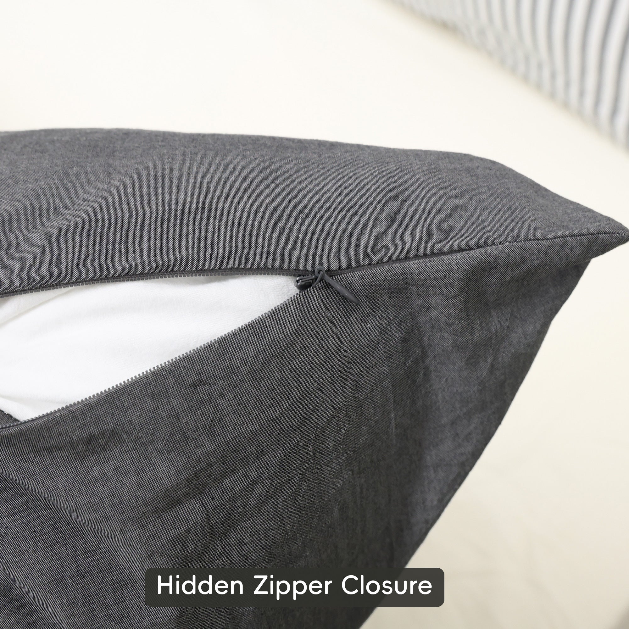 Made from 100% washed cotton with a slightly wrinkled texture, it combines the breathable feel of linen with the softness of cotton. Ideal for cozy nights, lounging, or adding a stylish touch to your bed. Finished with a hidden zipper for a neat look, available in versatile natural hues to match any bedding.