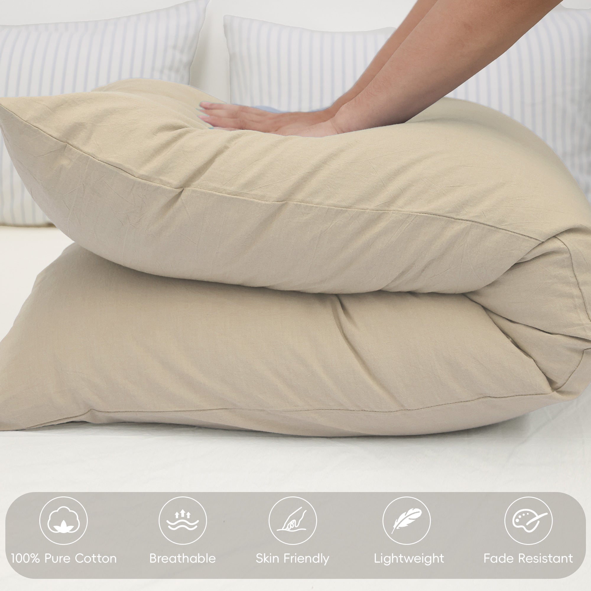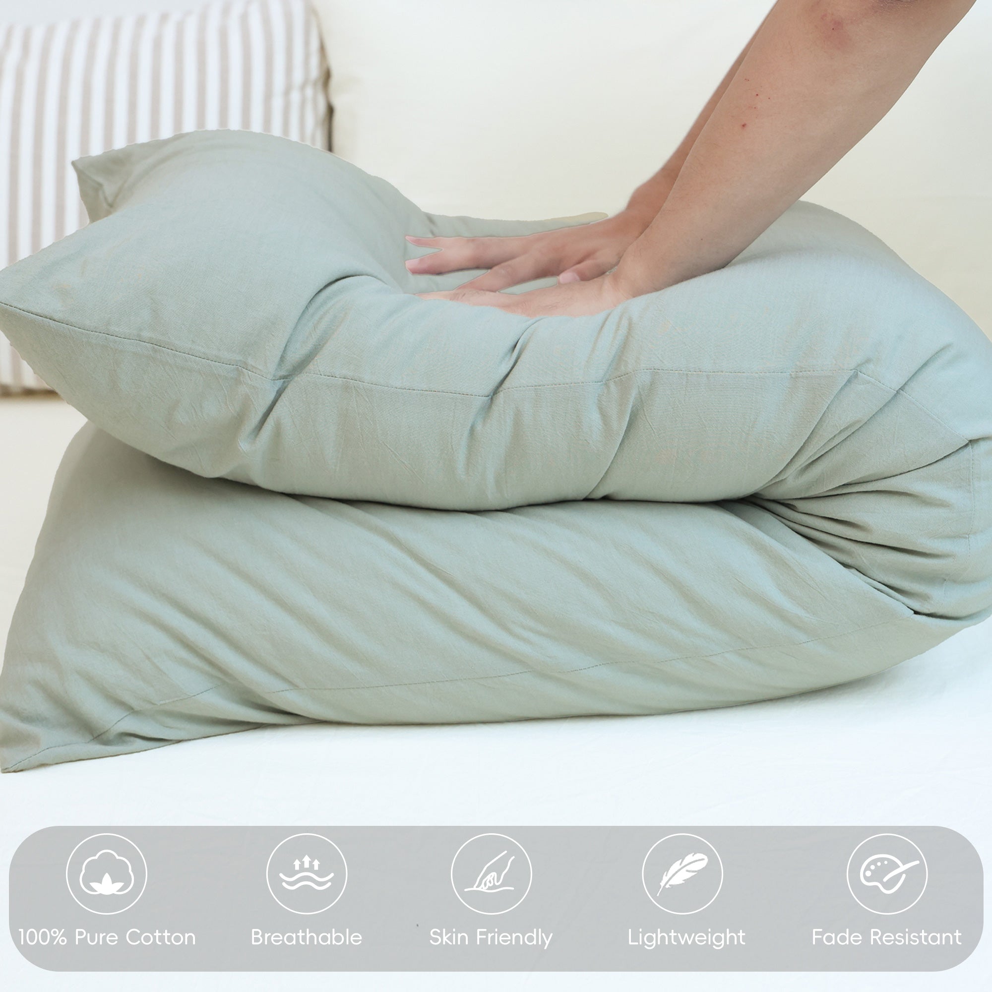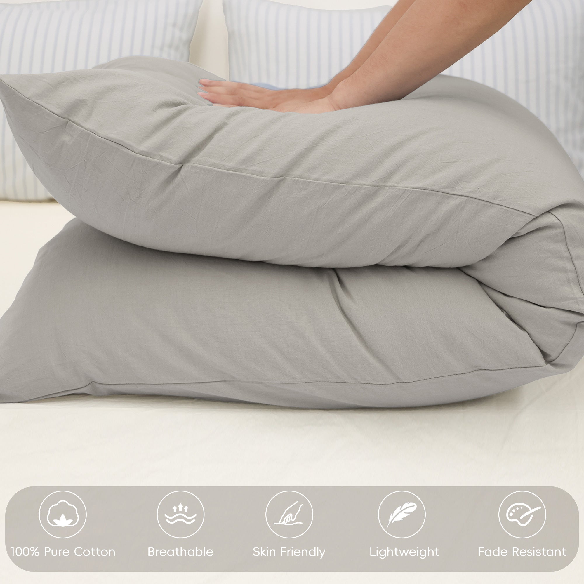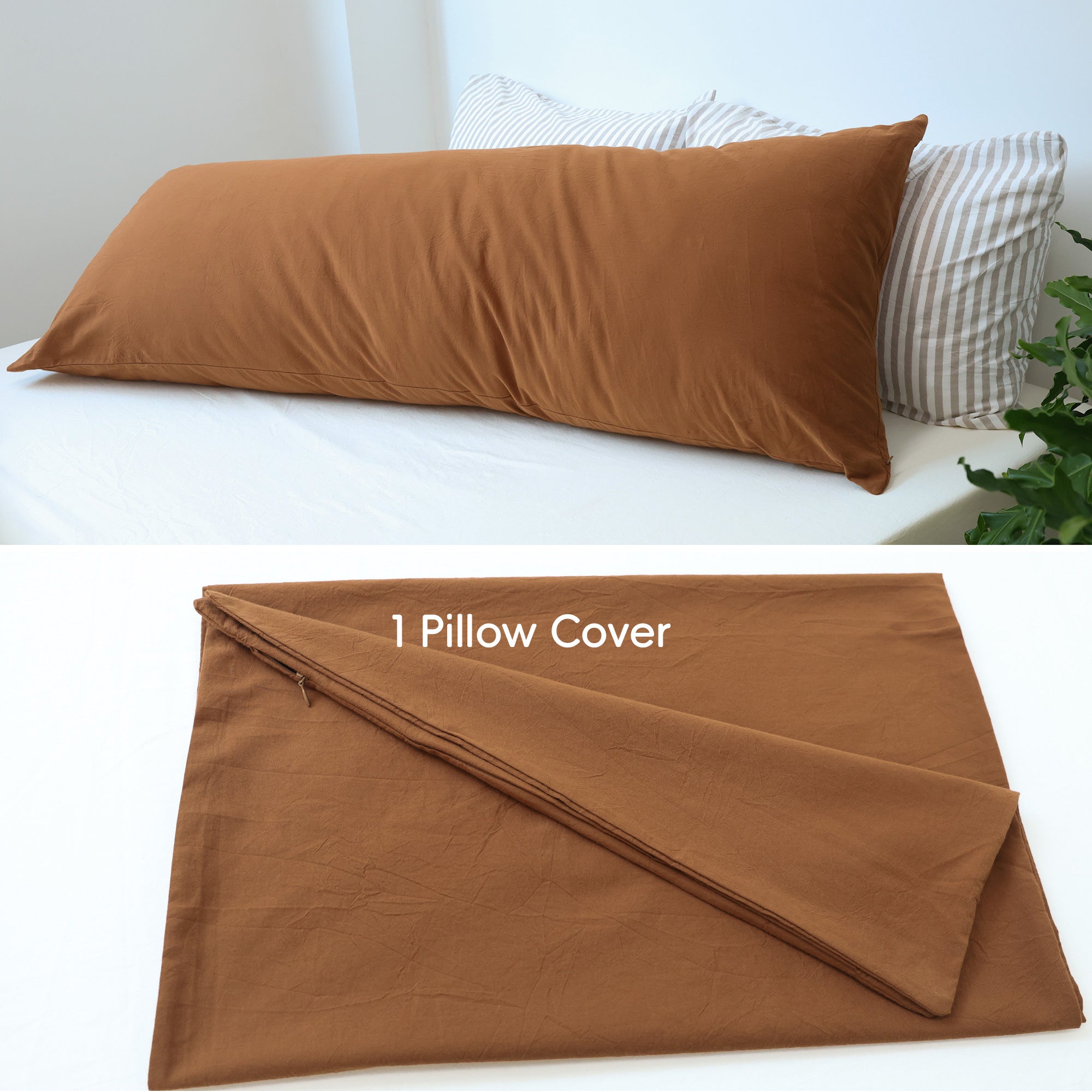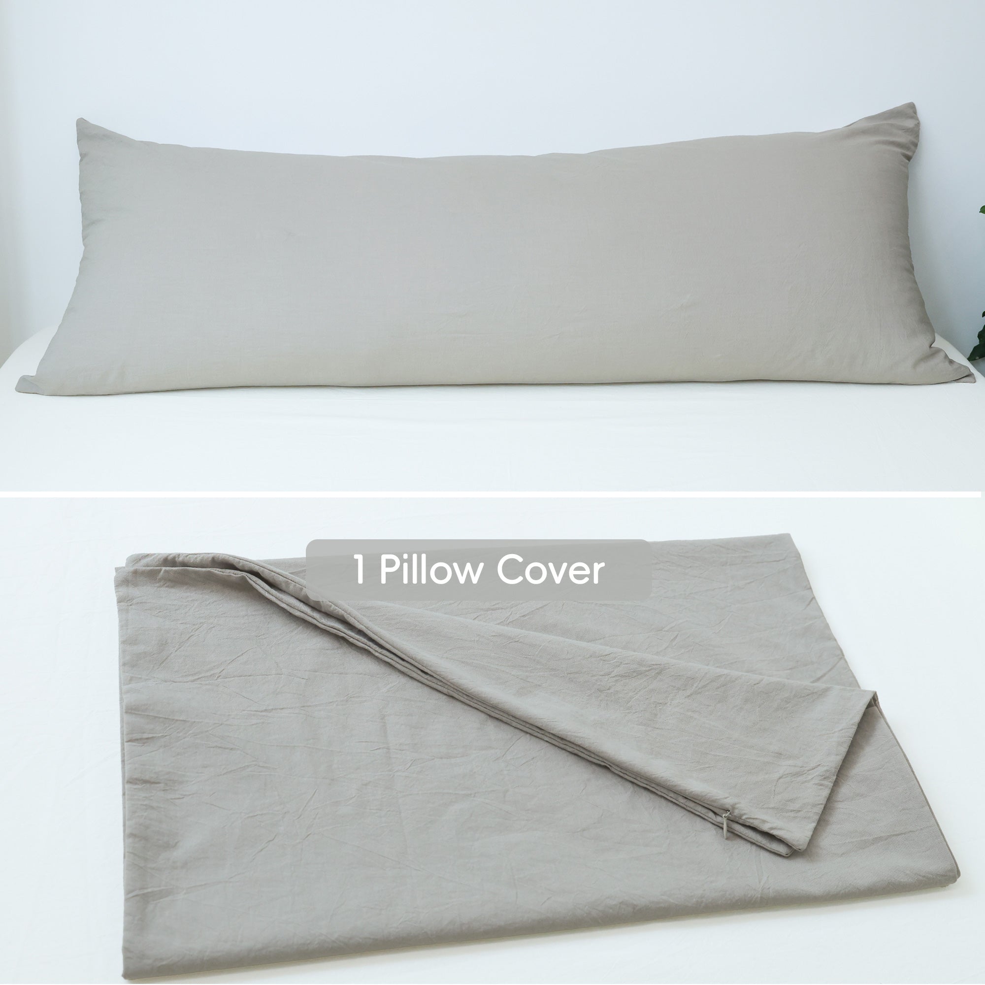 MooMee Body Pillow Cover 100% Washed Cotton Soft Breathable 1-Piece 21''x54''