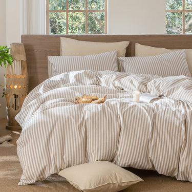 Quick View MooMee 100% Washed Cotton Striped Duvet Cover Set Linen Like Textured Breathable 3pcs$129.99From $64.99 / -